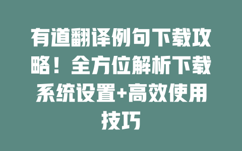 有道翻译例句下载攻略!全方位解析下载系统设置+高效使用技巧