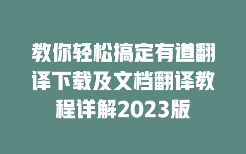 教你轻松搞定有道翻译下载及文档翻译教程详解2023版