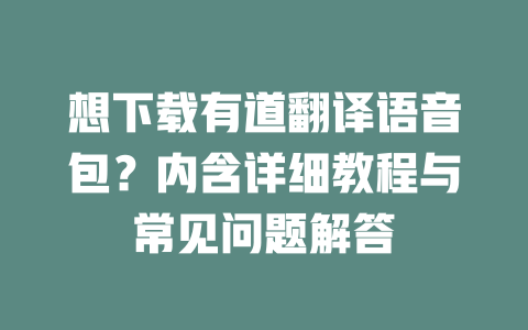 想下载有道翻译语音包?内含详细教程与常见问题解答